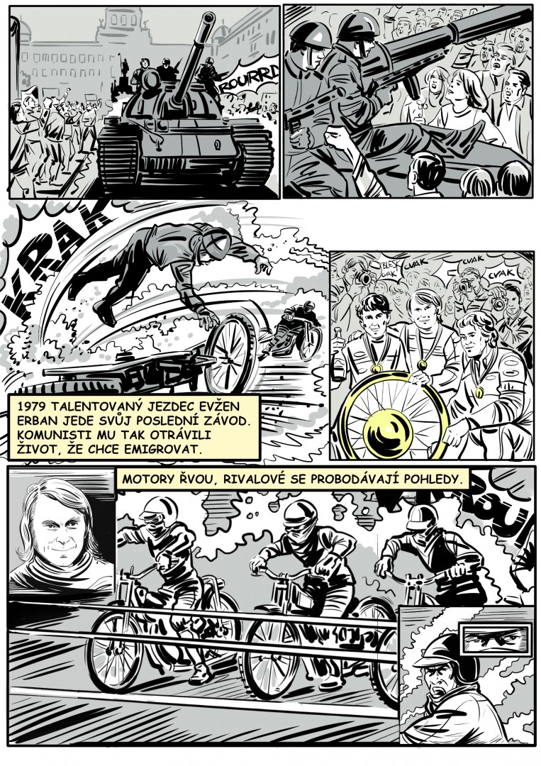 Hodně jsme se natrápili, obhlíželi plochodrážní stadiony, mluvili s mnoha jezdci, funkcionáři i fanoušky. Nyní se všechno to nádherné klukovské nadšení pokoušíme přetavit do scénáře, který maximálně zaujme. Zároveň vytváříme filmový storyboard ve formě hodně propracovaného komiksu, který vydáme v rámci filmové premiéry.